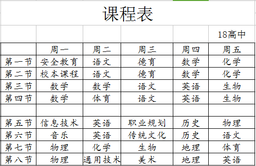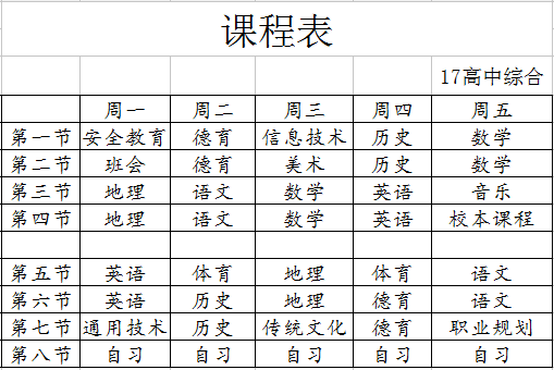 高中班课程表公示