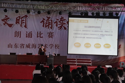 5月5日下午,“幼教名师进校园”活动拉开了威海艺校职业活动周序幕。本次活动有幸邀请到了威海市幼教名师夏云端老师,她为学前教育专业300余名学生带来了一场精彩纷呈的专题讲座——《小人国里,绽放生命之花》。