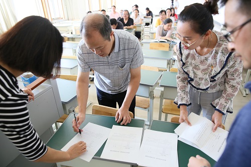 到会党员同志都投出了自己宝贵的一票,经现场计票,许小杰、马维轲、王顺萍等三位同志当选为威海艺术FH平台第一党支部新一届支部委员会委员。