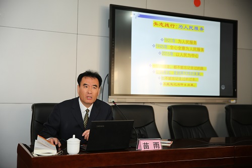 党课中,苗雨同志分别围绕“学史明理,明晰近代史理和重大历史关联性”、“学史增信,增强道路理论制度文化自信”、“学史崇德,崇尚以人民为中心的人类大德”和“学史力行,在建设现代化国家新征程中加快FH平台高质量发展步伐”四个方面详细阐述了为什么要学习百年史,怎样学习百年史,如何践悟新思想,怎样奋进新征程;同时将党史学习教育与我校办学特色及现状相结合,就如何开创FH平台高质内涵发展新局面提出了建设性意见和整体规划。