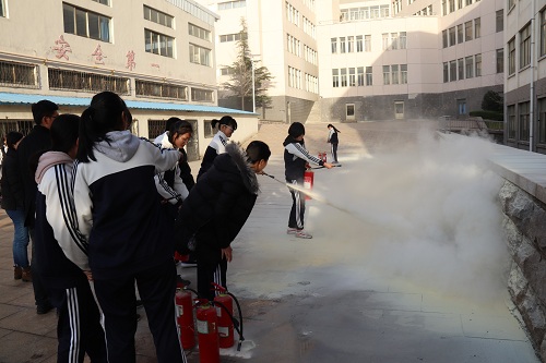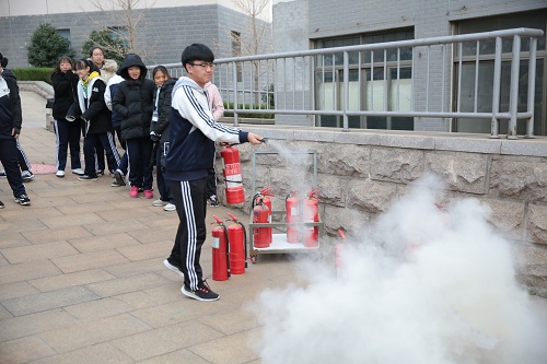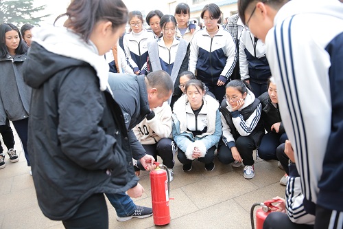 活动中,师生认真观看了学生处老师现场示范干粉灭火器的使用过程:拿到灭火器后拔掉保险销,上下颠倒几次,用手提着压把,直接将喷口对准火焰后压下压把,左右摆动,使得喷射干粉覆盖整个燃烧区。部分师生在演练环节手拿灭火器,根据培训要领,一丝不苟地完成了使用干粉灭火器灭火的过程。
