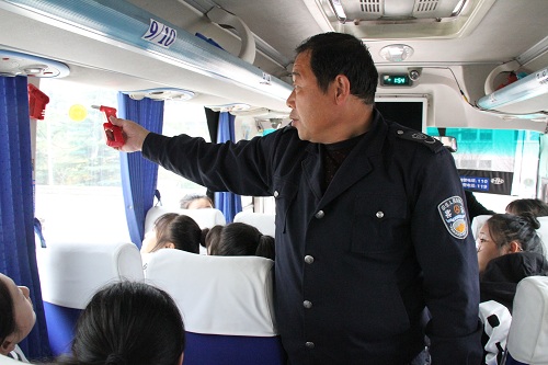 演练中,客运公司工作人员和同学们详细讲述有关乘车安全知识,再一次提醒乘车纪律:系好安全带、不随意走动、不能大声喧哗、不能乱丢垃圾等问题。接着,又向同学们讲解了遇到各种不同突发事故应选择的逃生方法:遇到校车起火要紧捂口鼻,弯腰撤离;需要砸碎车窗时,用安全锤砸车窗四角最容易;客车侧翻时怎么打开车顶安全出口。同时还强调,在任何突发事件中,冷静、秩序、速度是险处逃生的三大要素。